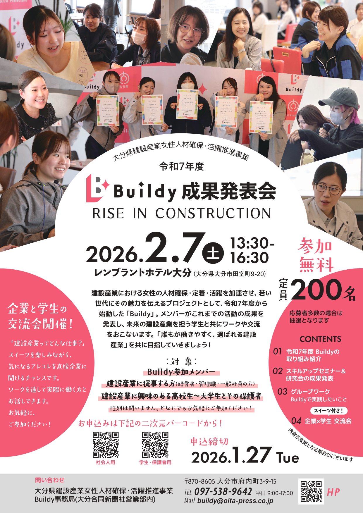 大分県建設産業女性活躍加速化促進事業『 Buildy 』 令和7年度成果発表会のお知らせ!!